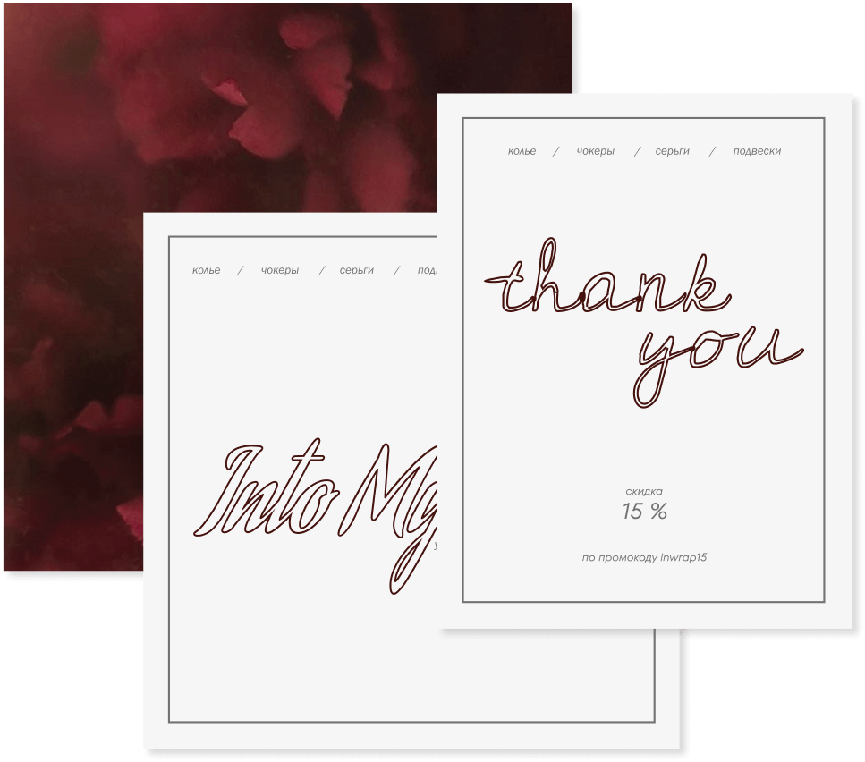 Если купон с промокодом будет использоваться как открытка с благодарностью за заказ, то можно рассмотреть варианты купонов на дизайнерской бумаге. Также такие варианты подходят для блогерских рассылок или презентаций.