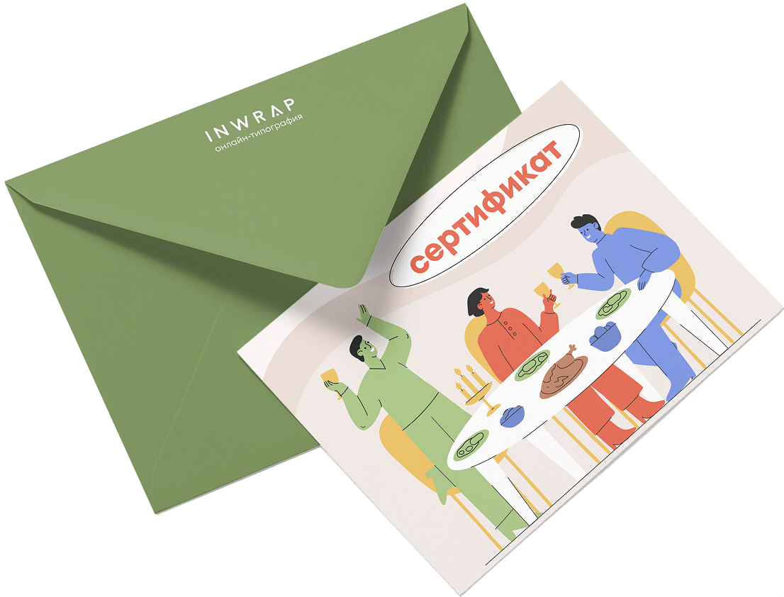 Сертификат в формате открытки или карточки в комплекте с конвертом